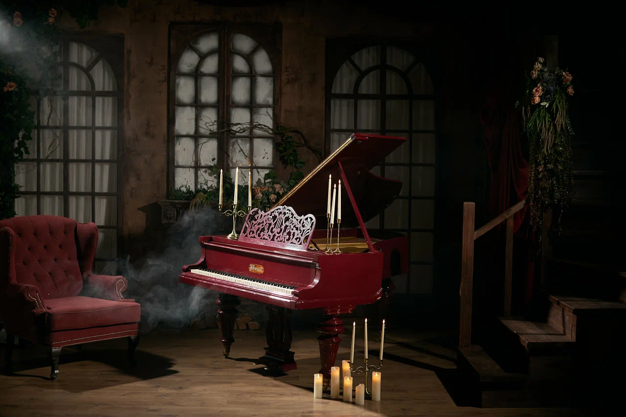 Важно сохранять баланс между светом и цветом. Не перегружайте кадр лишними оттенками — главное сохранить характер рояля.